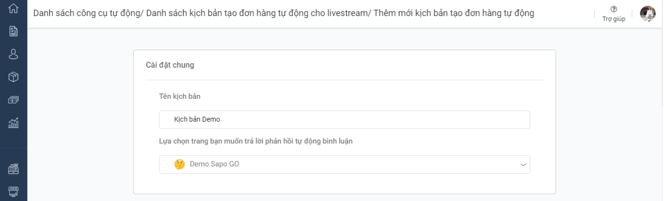 Bước đầu tiên để có thể bắt đầu tạo đơn tự động từ livestream Facebook về Sapo là tạo và thiết lập kịch bản. Bước này cần thực hiện trước khi livestream để thiết lập cú pháp bình luận, sản phẩm sẽ tạo đơn hàng tự động, mẫu trả lời bình luận khách hàng trong livestream tự động,…