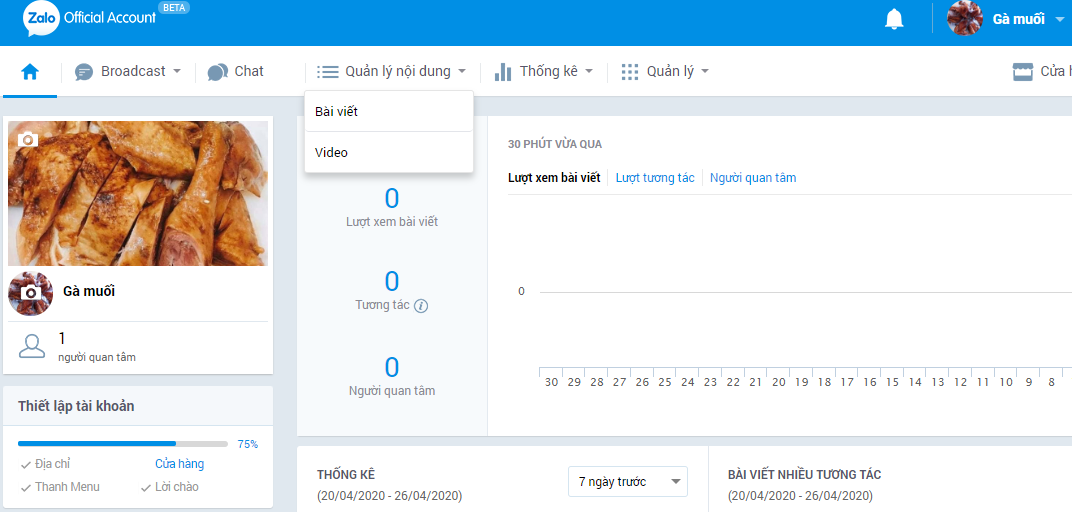 Sau khi tạo được page Zalo, để đăng bài viết bán hàng, bạn truy cập vào địa chỉ: https://oa.zalo.me/manage/oa#/