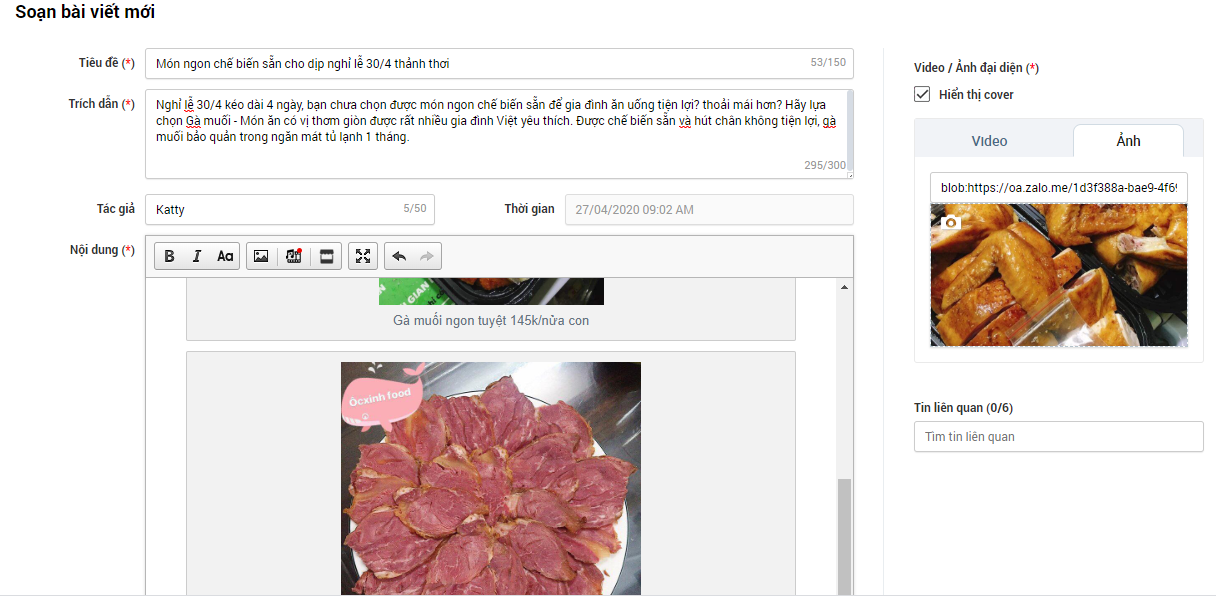 Bước 3: Bạn hãy điền đầy đủ thông tin sau và tải ảnh cho bài viết