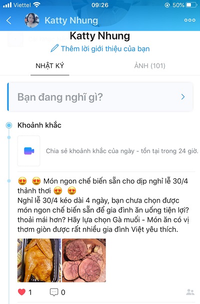 Bước 3: Mở ứng dụng Zalo, chọn chức năng tạo bài đăng mới. Trên Zalo cá nhân là phần Bạn đang nghĩ gì: Bạn Dán/paste nội dung vừa copy ở status Facebook, tải ảnh sản phẩm vừa lưu về từ Facebook trong Thư viện ảnh rồi bấm nút Hoàn tất.