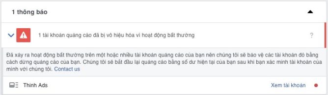 1.6. Tài khoản quảng cáo Facebook bị gắn cờ không vì lí do gì cả