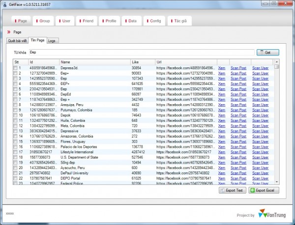 Sau khi các tool của uID quét xong bạn sẽ có hàng loạt địa chỉ facebook hiển thị ngay trong giao diện tool.