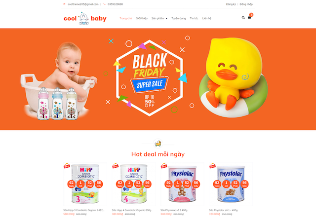Với gam màu sáng cam tươi sáng trẻ trung cùng nhiều tính năng nổi bật của 1 website bán hàng chắc chắn rằng Cool Baby sẽ không làm bạn phải suy nghĩ mà chọn luôn để sử dụng cho nhu cầu kinh doanh của bạn.