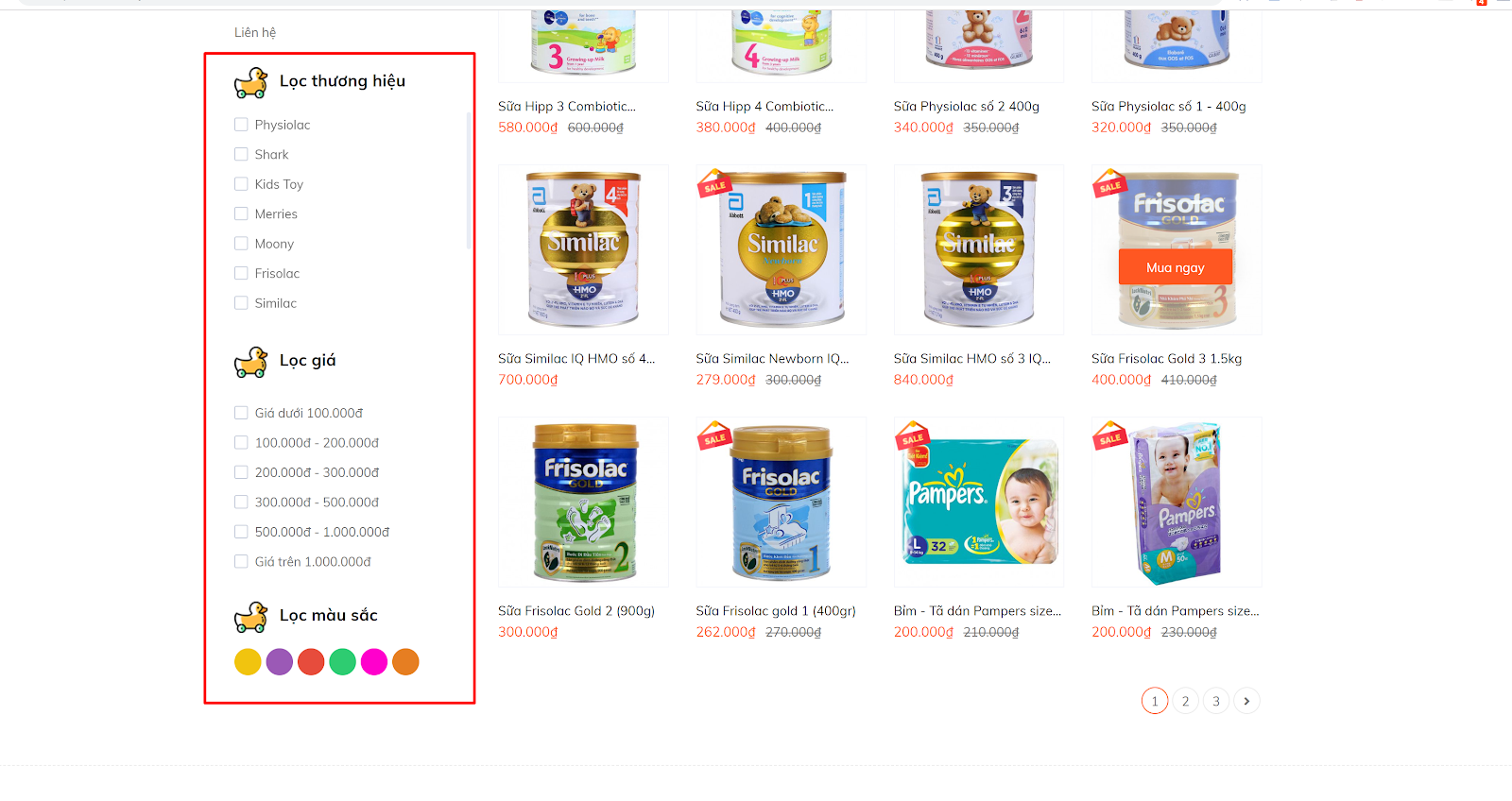 Ngoài ra, giao diện của ND baby cũng có cả bộ lọc thông minh tìm kiếm theo giá, tên thương hiệu giúp khách hàng có thể tìm ra được bất cứ sản phẩm nào cho dù website có đến hàng nghìn sản phẩm.