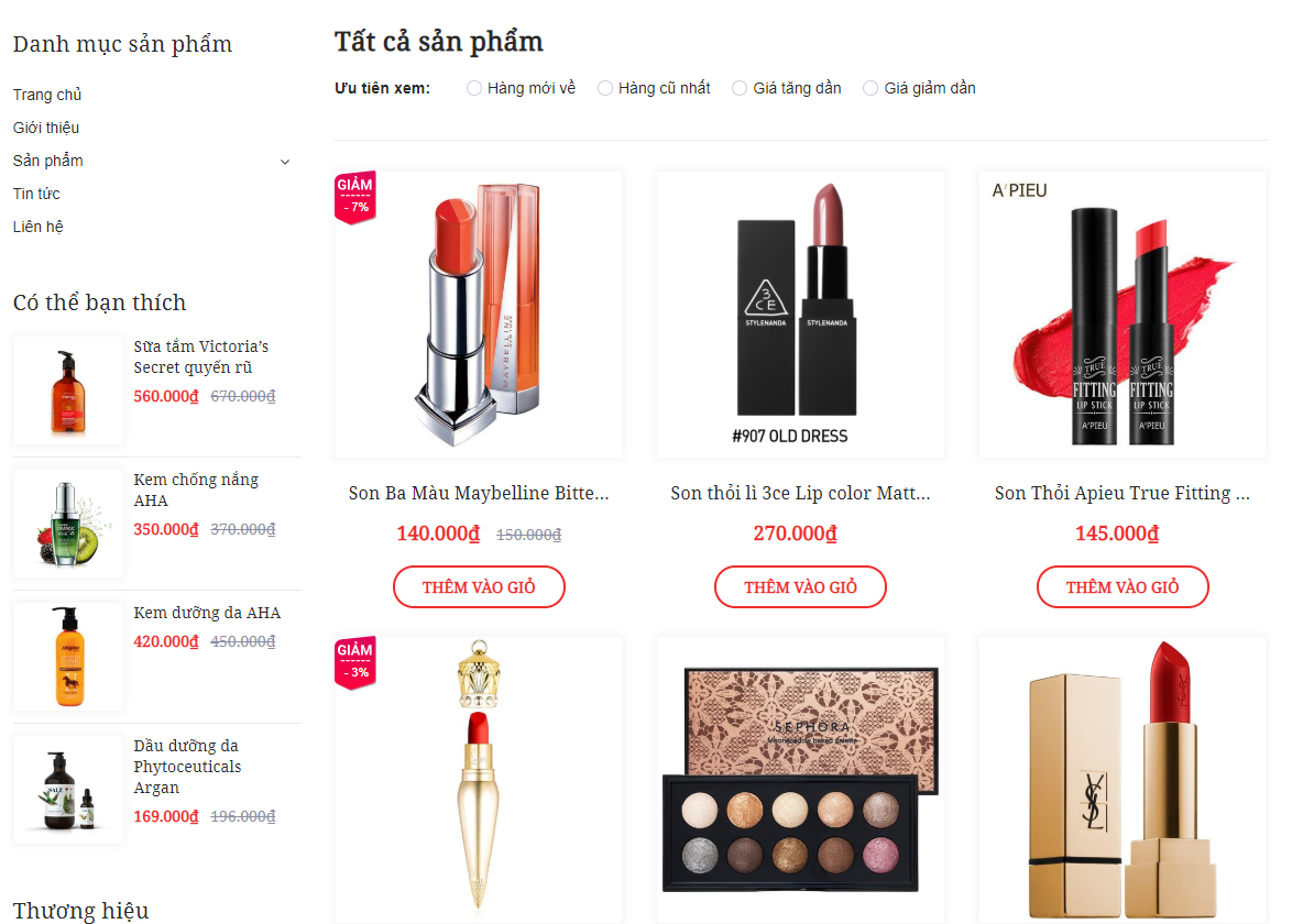 Bên cạnh đó, danh mục sản phẩm được thiết kế hài hoà và nổi bật để khách hàng có thể dễ dàng tìm kiếm những sản phẩm mà mình muốn.