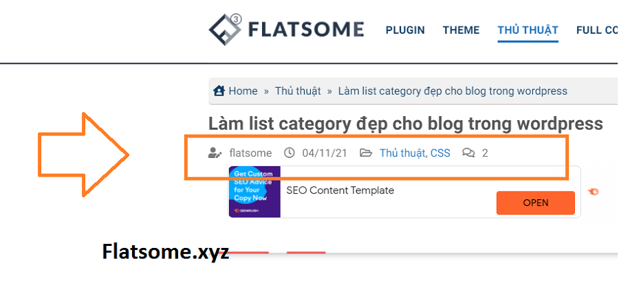 Hiện thị thông tin bài đăng blog wordpress trong theme flatsome
