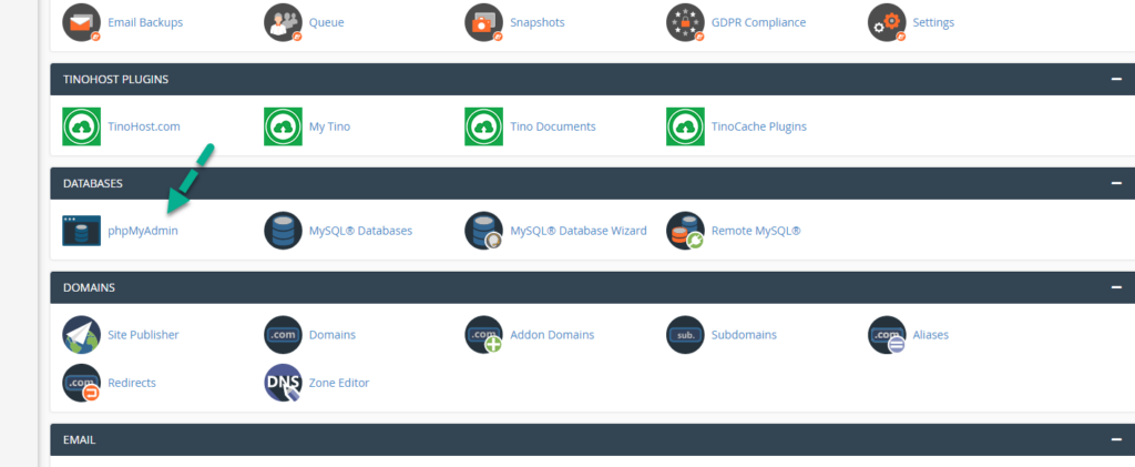 Đăng nhập vào hosting để vào cPanel, và chọn mục phpMyadmin