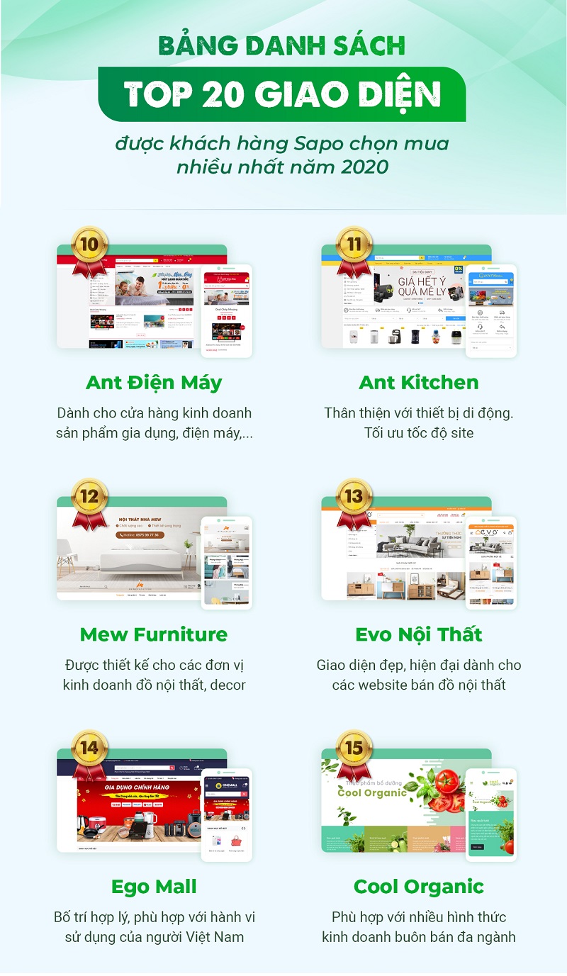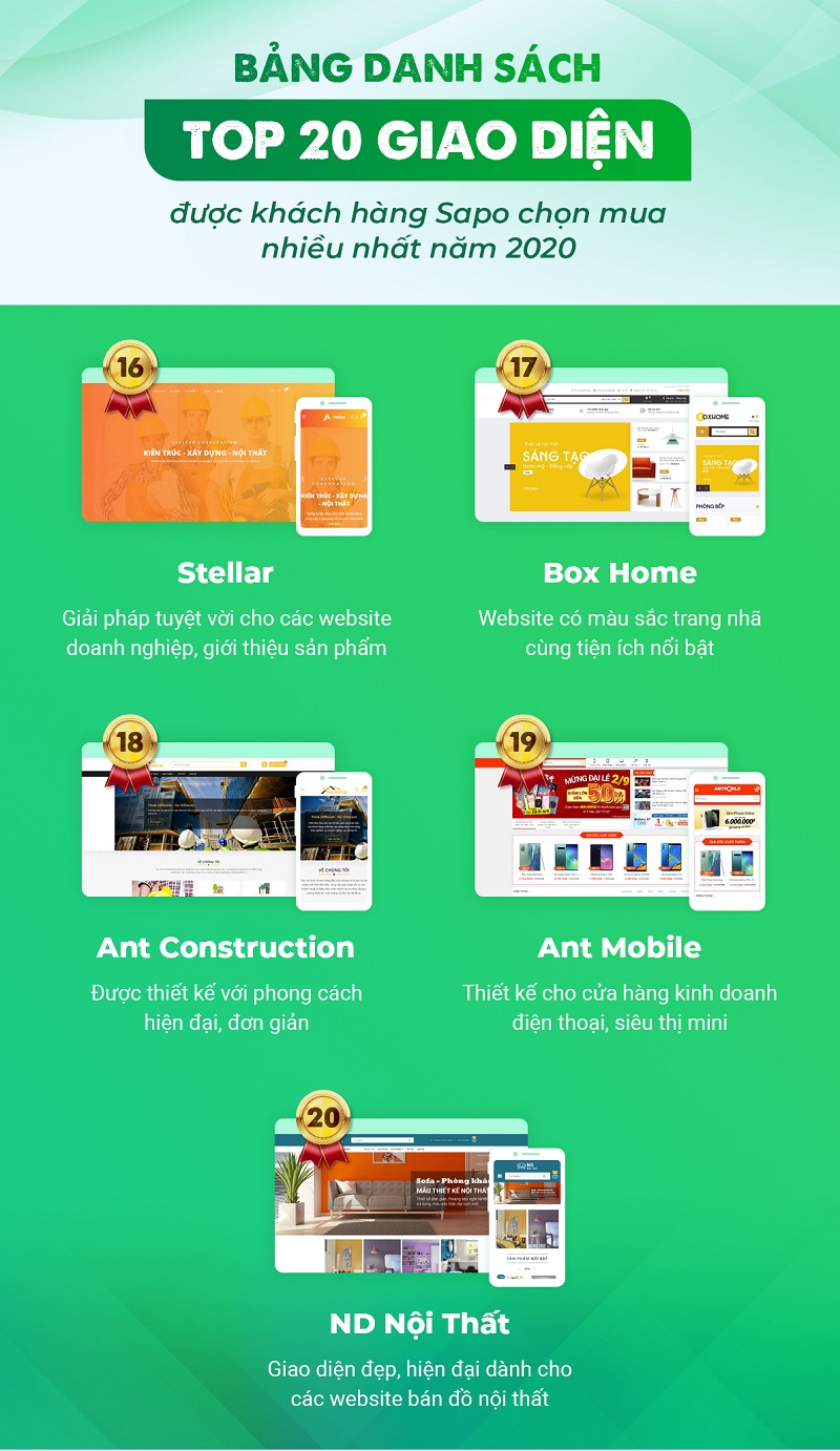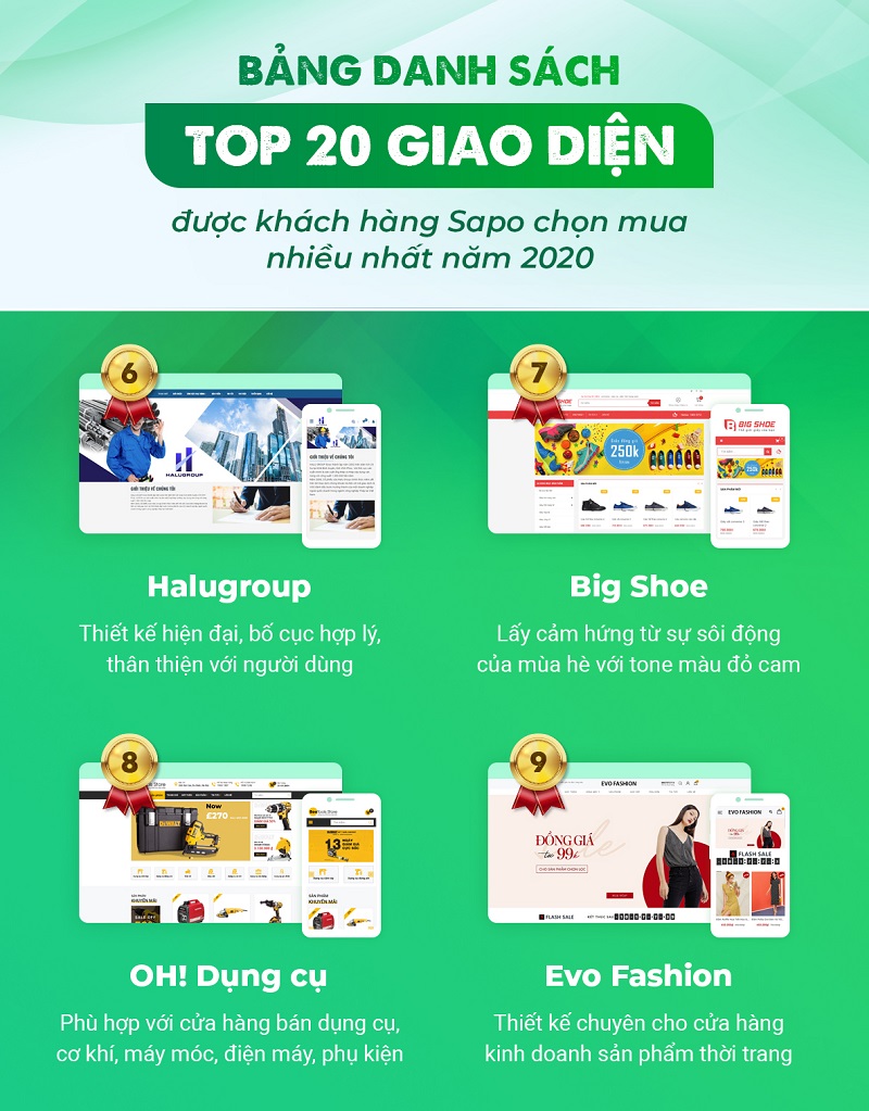 TOP 20 giao diện website được khách hàng Sapo chọn mua nhiều nhất năm 2020
